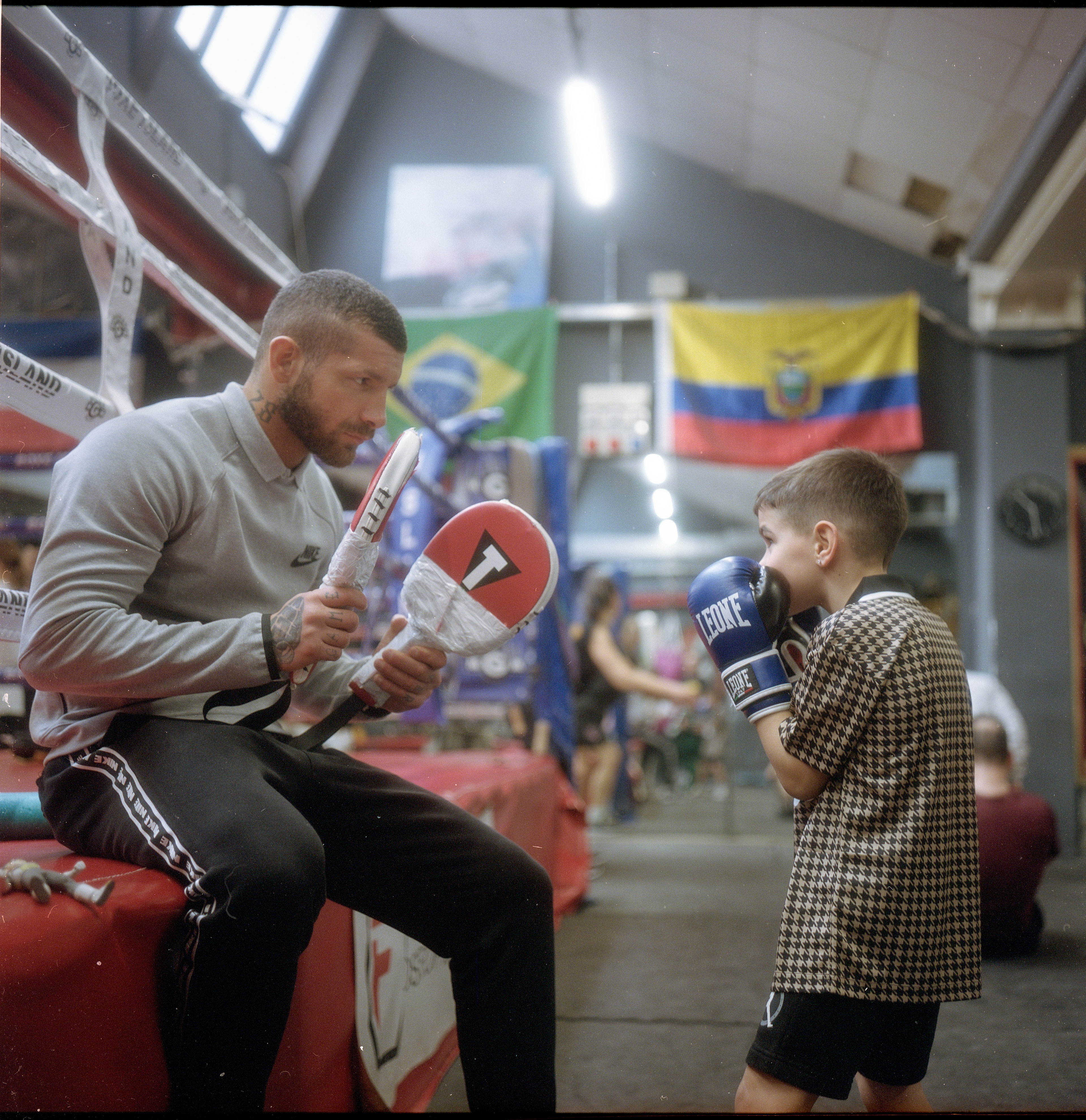“Qualcosa In Cui Credere” è un progetto fotografico nato seguendo il pugile italiano Christian Mazzon nelle settimane che precedono uno degli incontri più importanti della sua carriera, fino alla serata del 7 marzo all’Allianz Cloud di Milano. Il lavoro non si concentra tanto sul combattimento in sé, ma su tutto ciò che lo circonda: la palestra, gli allenamenti quotidiani, i momenti di attesa prima del match e le relazioni che si creano tra pugili, allenatori e le nuove generazioni che crescono all’interno dello stesso ambiente. All’interno della serie compare spesso anche un bambino che frequenta la palestra. La sua presenza diventa un filo narrativo silenzioso che attraversa il progetto e suggerisce la trasmissione di valori, disciplina e identità che avviene in questi luoghi. Realizzato su pellicola medio formato, il lavoro prova a raccontare la boxe non solo come sport, ma come un ambiente umano fatto di rituali, relazioni e passaggi tra generazioni.
